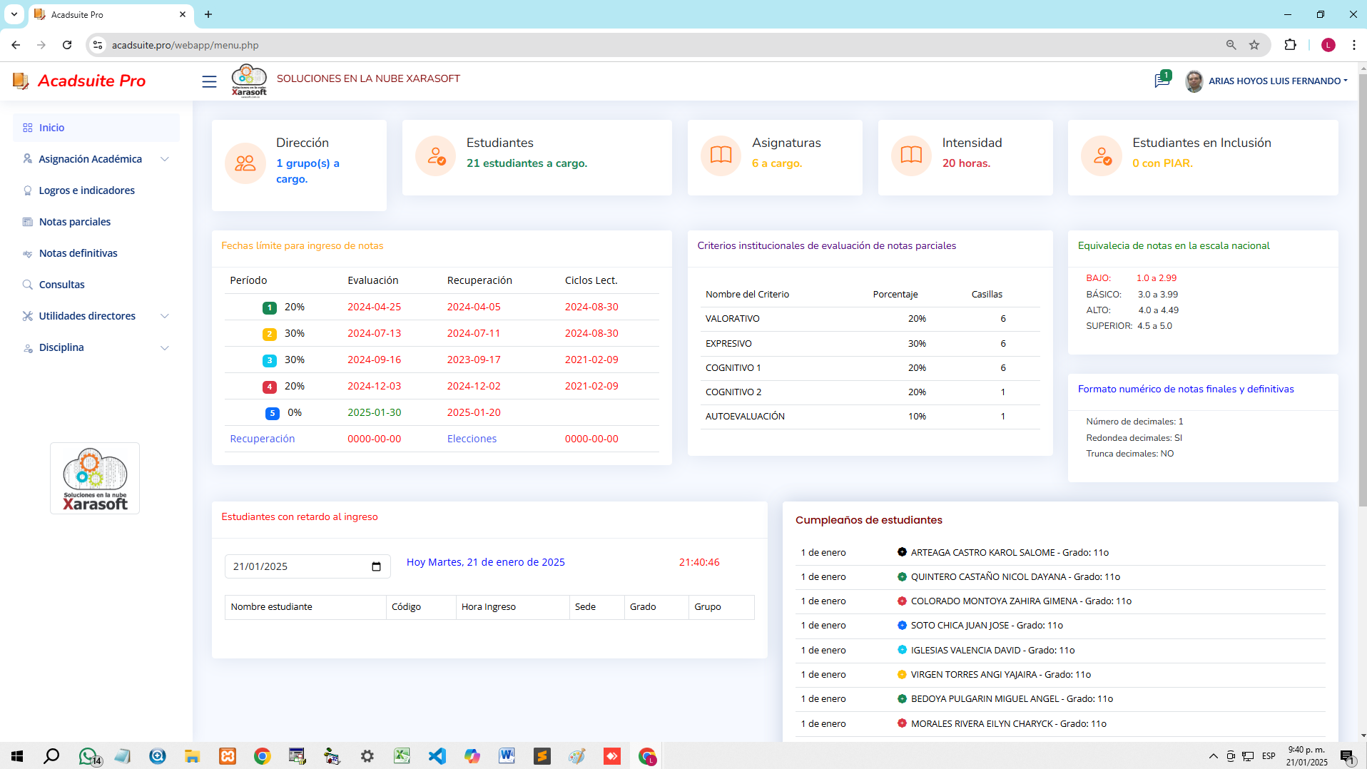 Acadsuite se ha convertido en el mejor aliado de los docentes para facilitar su labor en la planeación de actividades y evaluación de sus estudiantes. Esta suite permite a los docentes interactuar con estudiantes y padres de familia a través del acadsuite.homes. Con su nuevo menú lateral es facil e intuitiva. Puede cambiar entre módulos sin retornar a un menú principal.